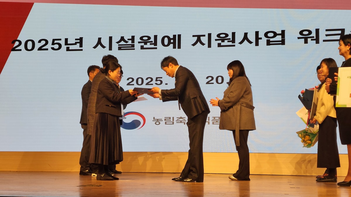영주시 관계자가 농림축산식품부가 주관하는 시설원예지원사업 지자체 평가에서 상을 받고 있다./사진제공=경북 영주시