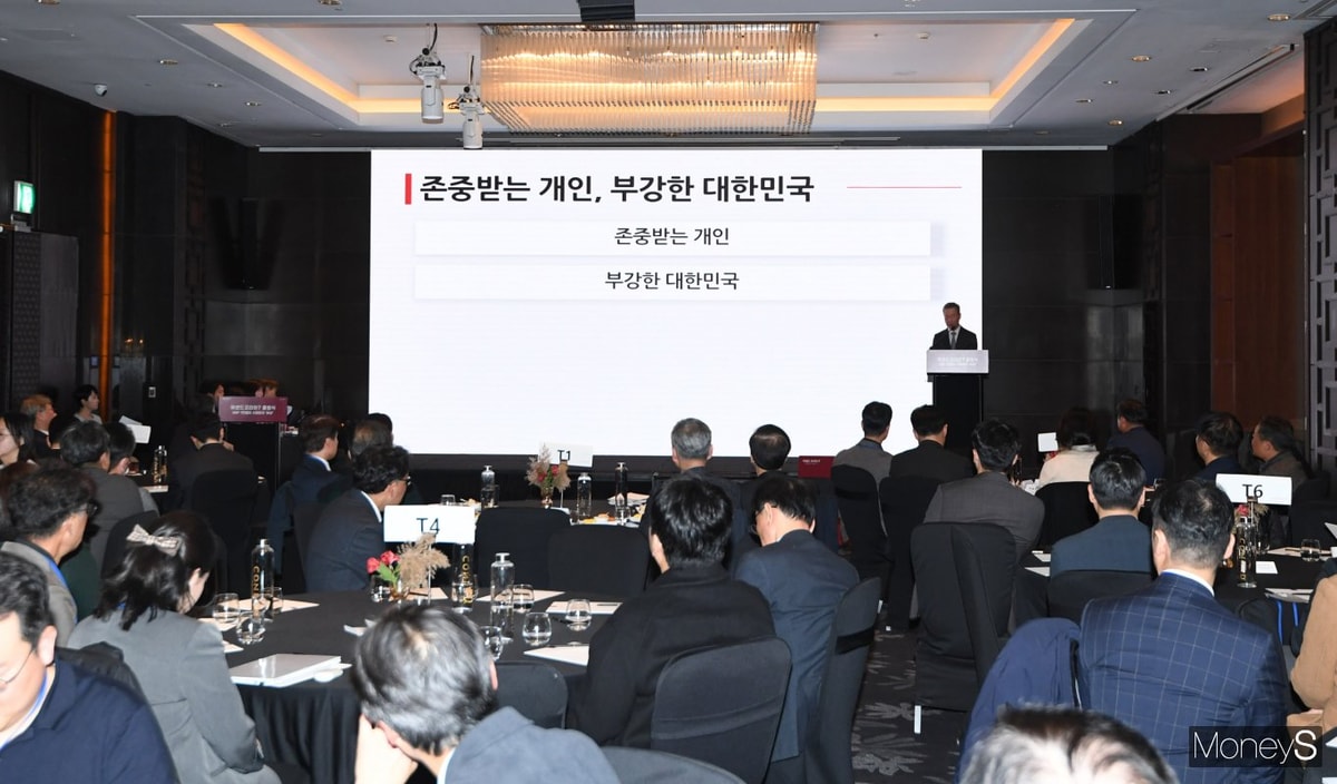 홍선근 머니S 회장이 25일 서울 영등포구 여의도 콘래드 서울에서 열린 '어센드 코리아7' 출범식에서 '어센드코리아7은 왜 탄생했나'를 주제로 발표하고 있다.