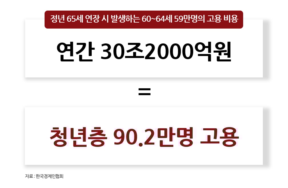이밖에도 정년 연장은 우리 사회의 여러 갈등을 심화시킬 가능성이 높다. 노조가 있는 대기업이나 공공부문 정규직만 혜택을 보는 불평등이 나타나고, 청년 취업난으로 세대 간 갈등이 커질 수 있다.