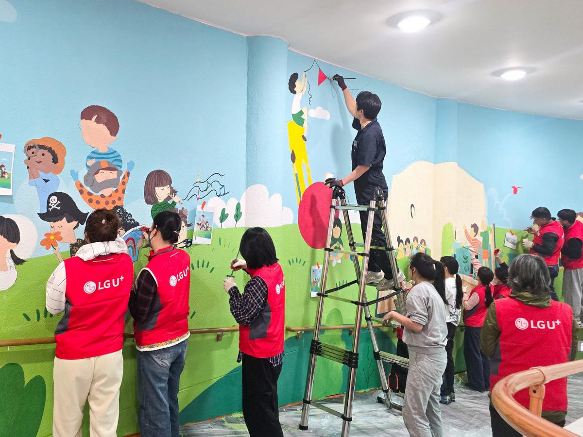LG유플러스는 시각장애 학생들을 위한 벽화 그리기 봉사활동도 진행했다. 지난 25일 임직원은 충주성모학교를 찾아 학교 담장에 약 46.15㎡ 크기의 벽화를 함께 그렸다. 밝은 톤으로 그려진 벽화는 저시력 학생들이 따뜻하고 안정적인 분위기에서 학습할 수 있도록 돕는 역할을 할 것으로 기대된다.