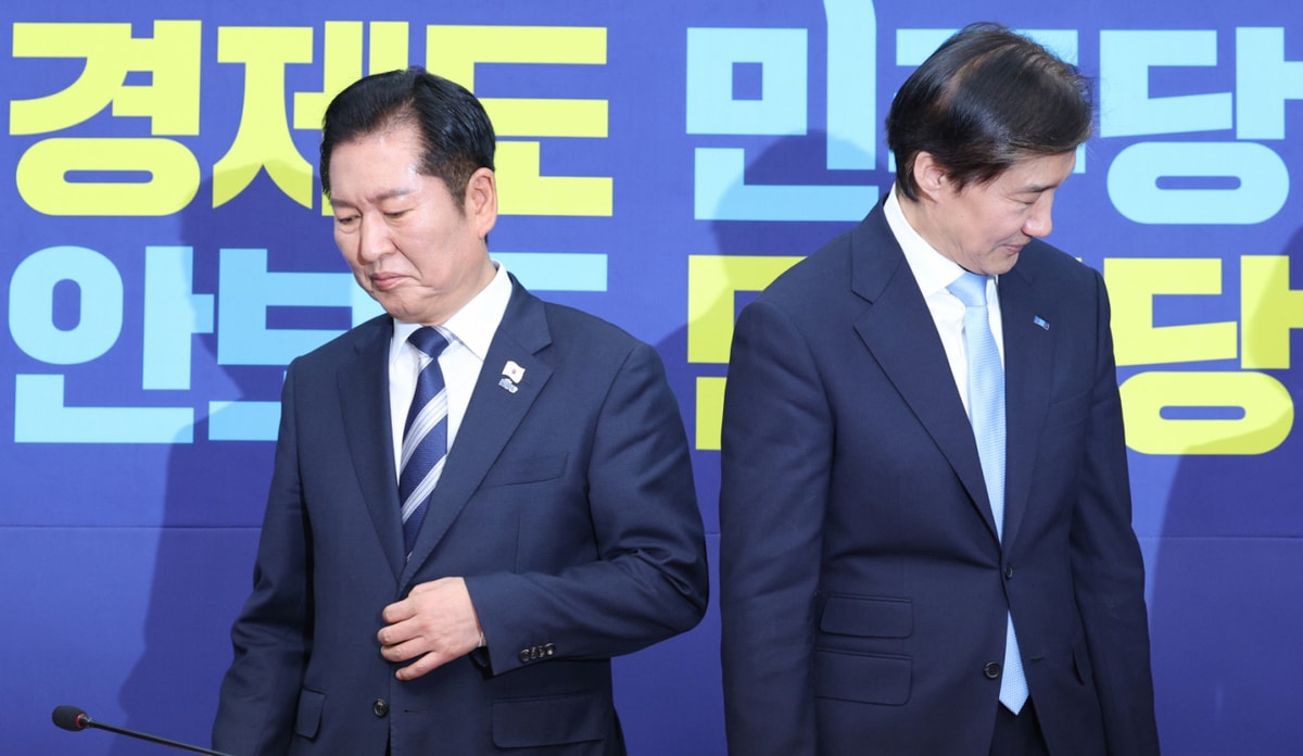 조국 조국혁신당 대표와 정청래 더불어민주당 대표가 상견례 자리에서 정치개혁 사안을 두고 신경전을 벌였다.