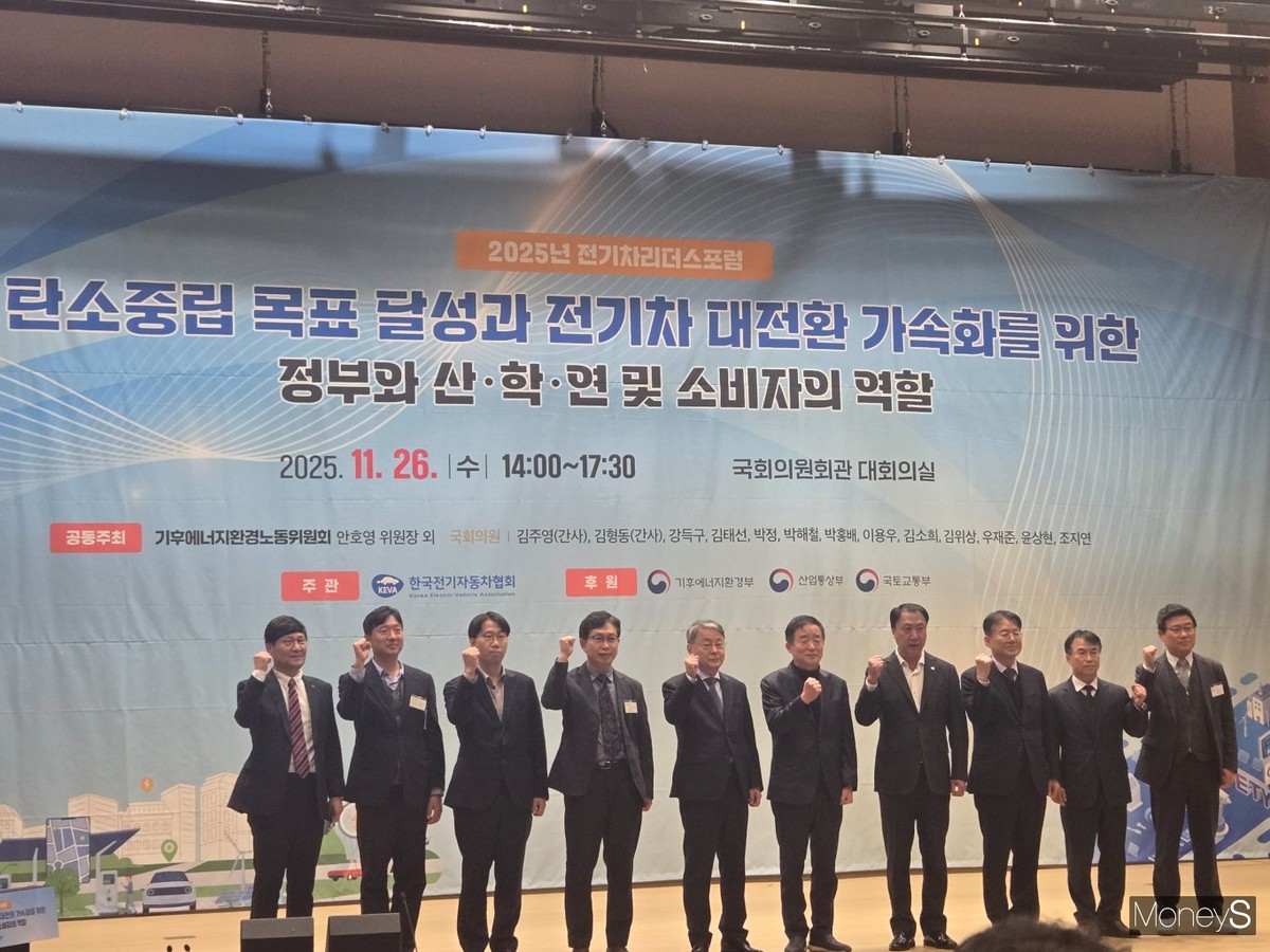 안호영 국회 기후에너지환경노동위원회 위원장과 한국전기자동차협회 등은 26일 서울 영등보구 국회의원회관에서 '2025년 전기차 리더스 포럼'을 개최했다. '탄소중립 목표 달성과 전기차 대전환 가속화를 위한 정부·산·학·연 및 소비자의 역할'을 주제로, 전기차 산업의 지속가능한 발전 방안에 대한 논의가 이뤄졌다.