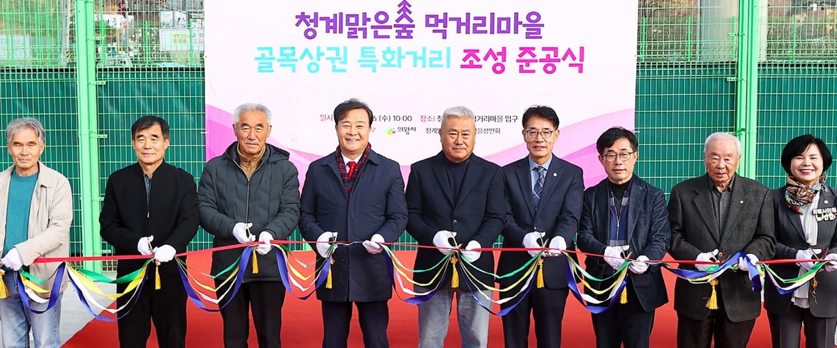 의왕시는 26일 청계동에서 '청계맑은숲 먹거리마을 골목상권 특화거리 조성' 준공식을 개최했다고 밝혔다.