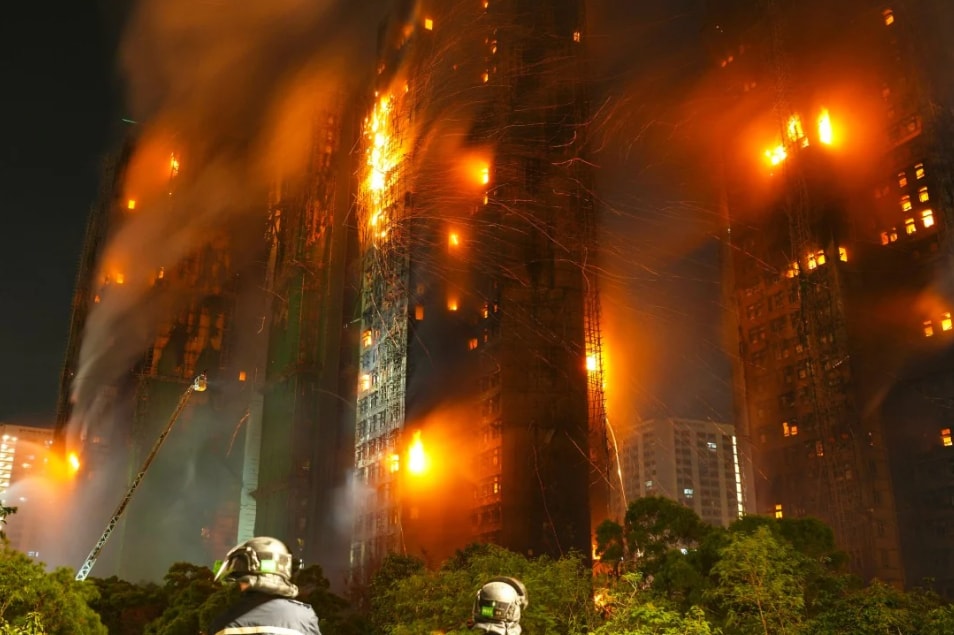 화재는 이날 오후 2시51분쯤 시작됐다. 발화 원인은 아직 확인되지 않았다. 리모델링 중이던 건물을 둘러싼 대나무 비계(임시 가설물)로 불길이 옮겨붙으며 화재가 커진 것으로 추정된다. 불이 난 아파트는 8개 동 2000여가구로 구성됐으며 약 4800명이 거주했던 것으로 알려졌다.
