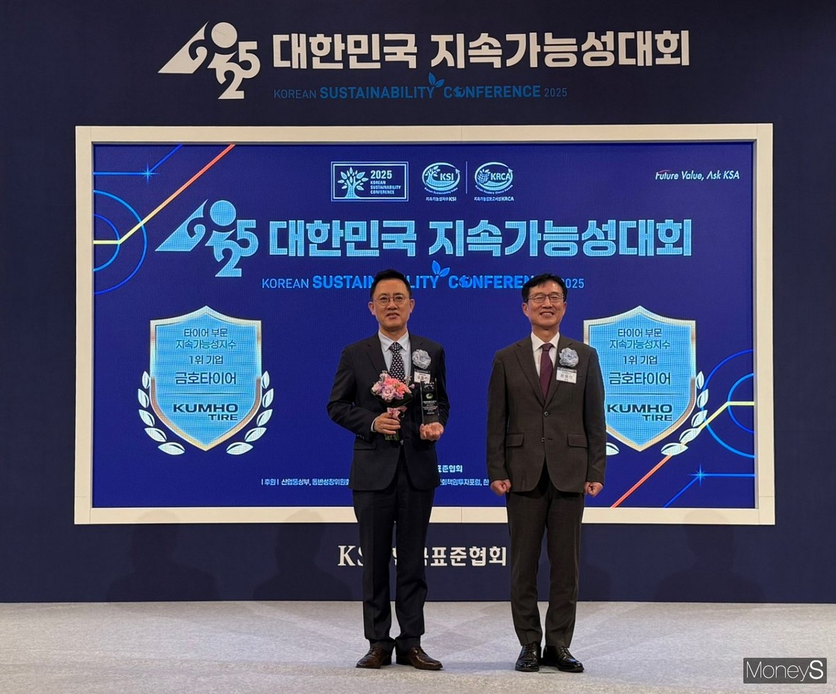 금호타이어는 지난 26일 서울 소공동 롯데호텔에서 개최된 '2025 대한민국 지속가능성대회'에서 지속가능성지수(KSI) 타이어 부문 1위와 지속가능성 보고서상(KRCA)제조 부문 우수 보고서로 선정됐다고 27일 밝혔다.