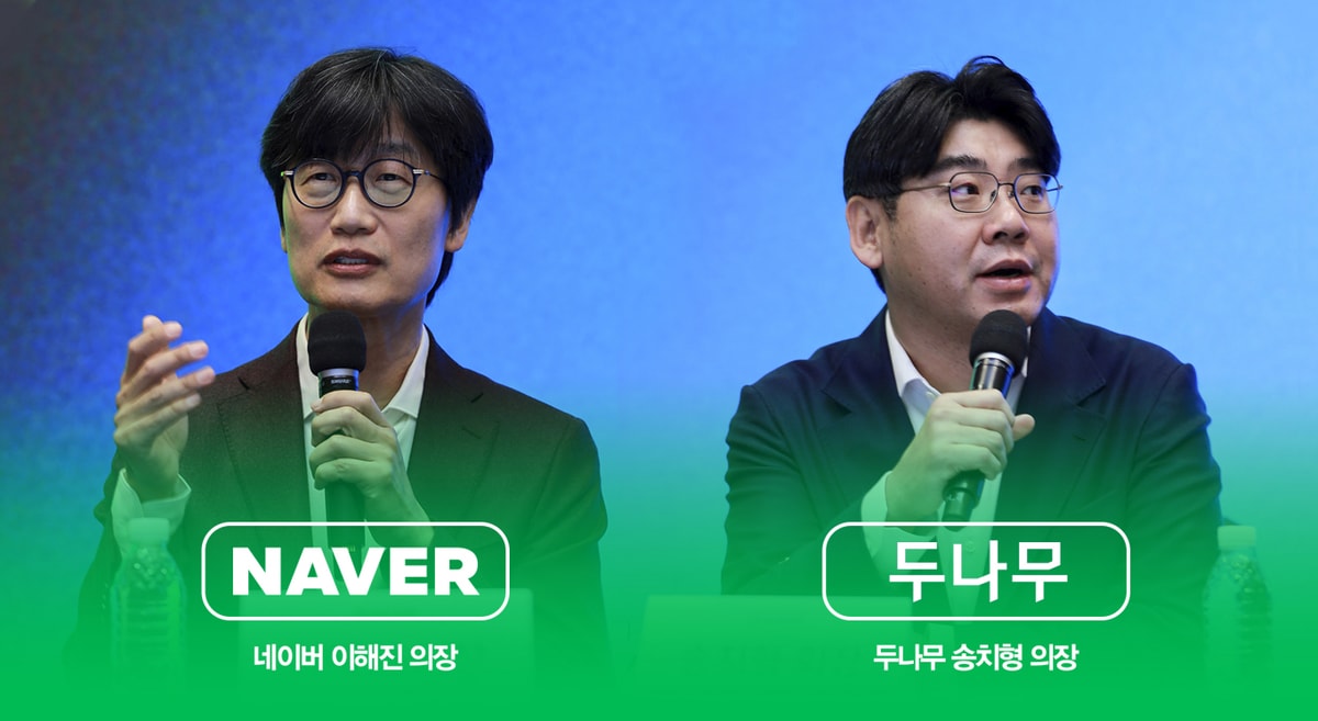 기자회견에는 이해진 네이버 의장과 송치형 두나무 회장이 직접 참석했다. 최수연 네이버 대표와 오경석 두나무 대표, 박상진 네이버파이낸셜 대표 등 3사 주요 경영진도 함께했다.