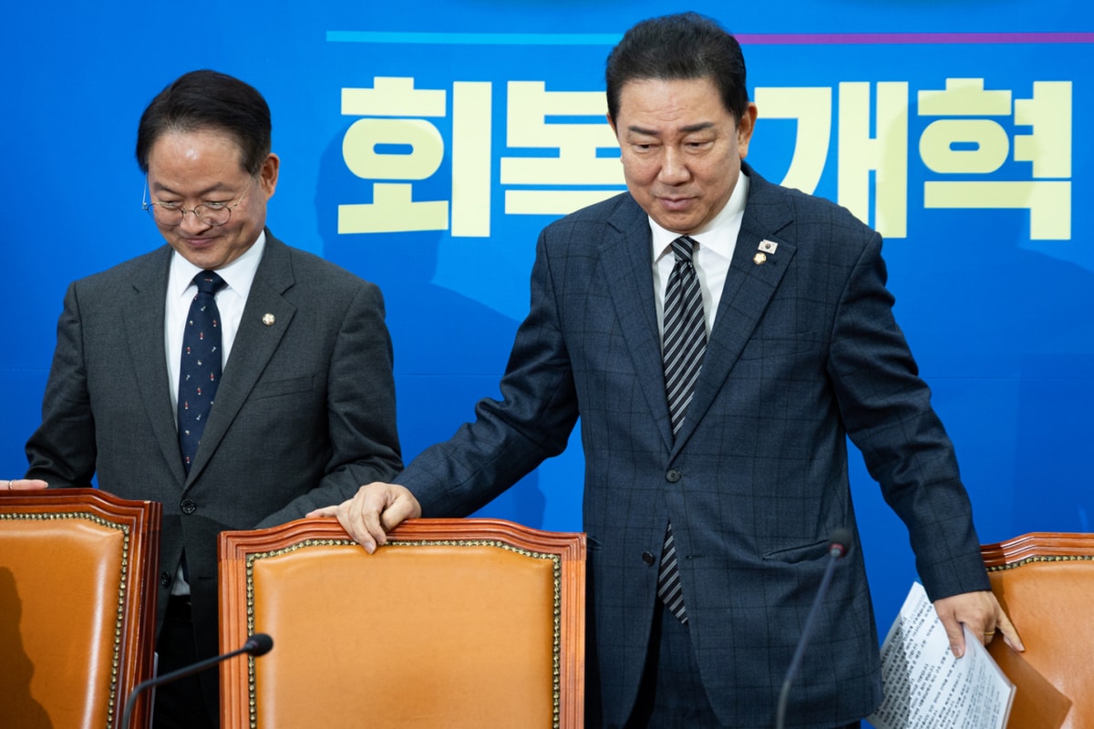 김병기 민주당 원내대표는 27일 국회 정책조정회의에서 "MBK와 홈플러스에만 맡겨서는 더 이상 해결이 불가능한 단계에 이르렀다"며 "모든 것이 MBK의 약탈적 경영 때문이라는 것을 부인할 수 없을 것"이라고 했다.