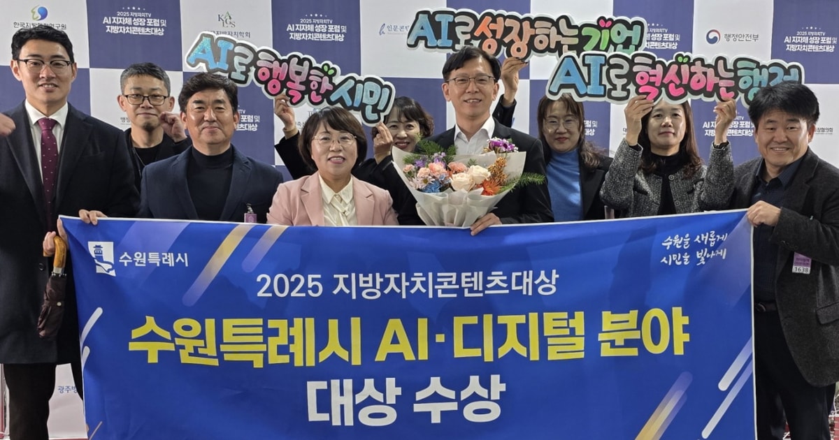 수원특례시는 '2025 지방자치콘텐츠대상'에서 인공지능(AI)·디지털 분야 대상을 수상했다고 28일 밝혔다.