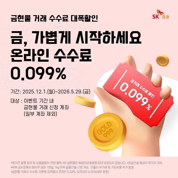 SK증권이 금현물 거래 온라인 수수료 할인 이벤트를 내년 5월까지 연장한다고 28일 밝혔다.