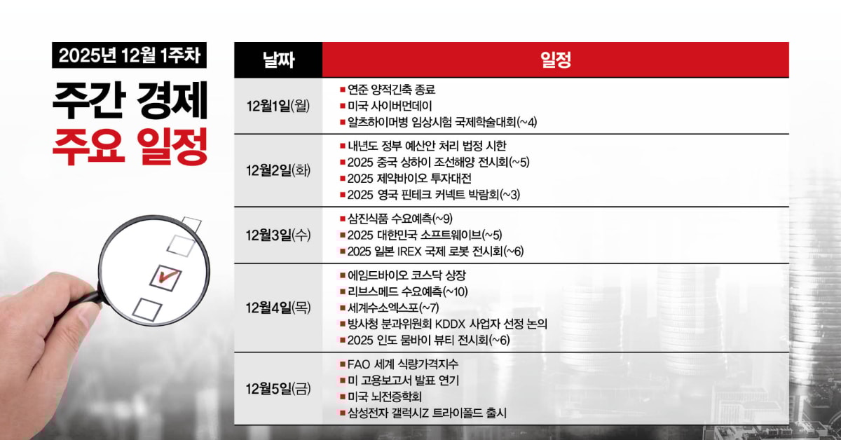 12월1주차에는 미국 연방준비제도(Fed·연준) 양적긴축 종료가 이뤄지며 각종 전시회가 열릴 예정이다.