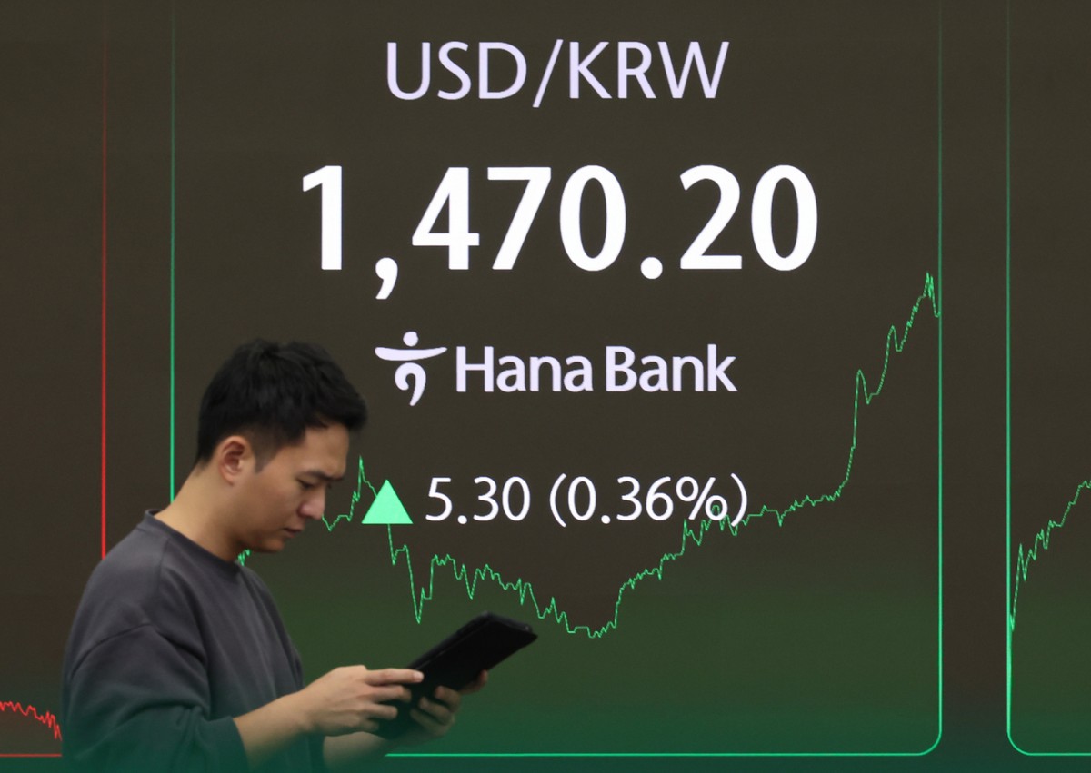 서울 외환시장에서 원·달러 환율이 전 거래일(1464.9원)보다 5.7원 오른 1470.6원에 주간거래를 마감한 28일 오후 서울 중구 하나은행 딜링룸 전광판에 지수가 표시돼 있다./사진=뉴시스