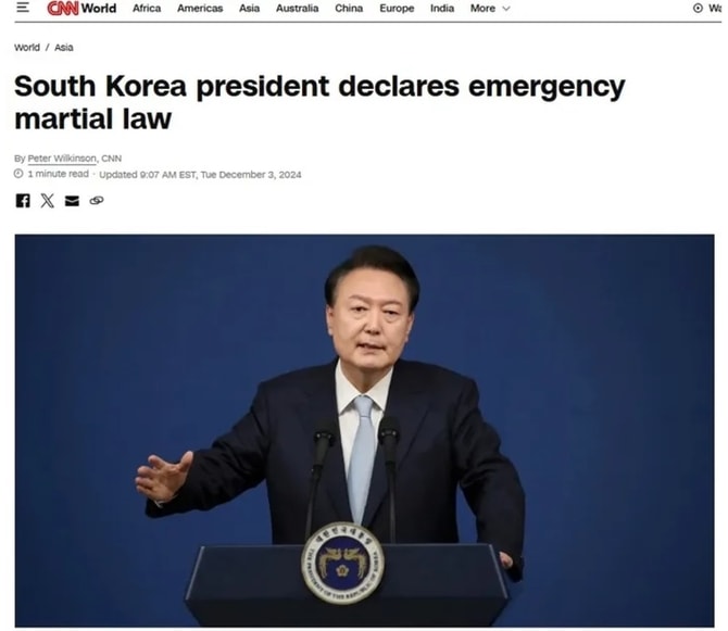 비상계엄 선포에 외신들도 긴급 보도 나서