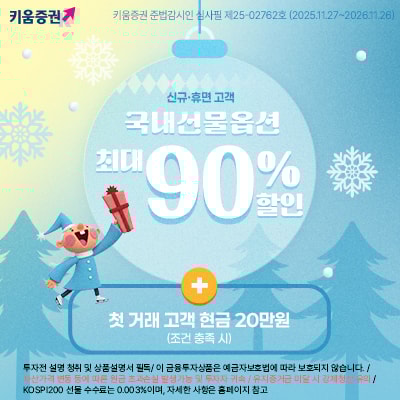 추가로 키움증권에서 국내선물옵션을 처음 거래하는 고객은 거래 조건 충족 시 현금 20만원을 지급받을 수 있다. 할인 대상 종목은 지수선물옵션, 주식선물옵션, 통화선물 등이며 지난 6월9일 이후 거래가 시작된 KRX 야간선물옵션도 포함된다.