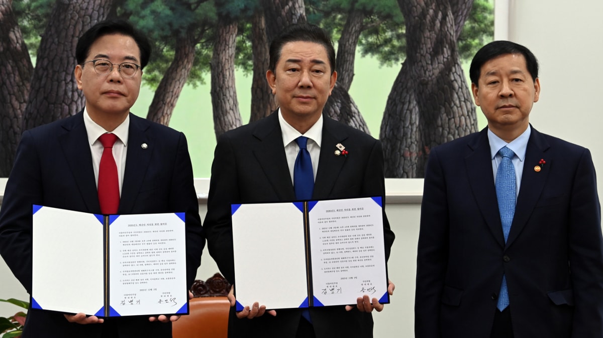 김병기 더불어민주당 원내대표와 송언석 국민의힘 원내대표는 이날 오전 국회에서 '2026년도 예산안 처리 합의문'을 발표하며 오후 4시 본회의를 열어 내년도 예산안과 세입예산안 부수 법률안 등을 처리하기로 했다고 밝혔다. 본회의에서는 부수 법안을 먼저 처리한 뒤 마지막 순서로 예산안을 표결에 부친다.