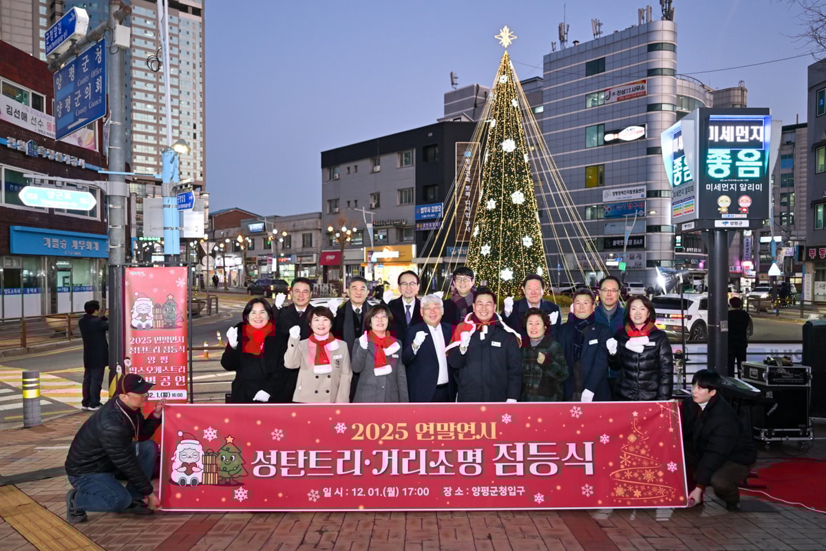 양평군은 지난 1일 군 청사 입구에서 '2025년 연말연시 성탄트리 및 거리조명 점등식'을 개최했다고 2일 전했다. 이날 행사에는 추운 날씨에도 불구하고 100여 명의 군민이 참석했으며 올해도 지난해에 이어 군청 앞 회전교차로와 양평장로교회 앞 삼거리 회전교차로에 성탄트리와 거리조명이 설치됐다. 전진선 양평군수는 "트리와 거리조명의 불빛이 어둠을 밝히듯, 사랑과 나눔의 마음이 양평 전역에 퍼져 지역을 밝히는 희망이 되기를 바란다"며 "오늘 밝힌 빛으로 따뜻한 연말연시 분위기가 조성돼 양평군민 모두가 행복하기를 바란다"고 전했다.