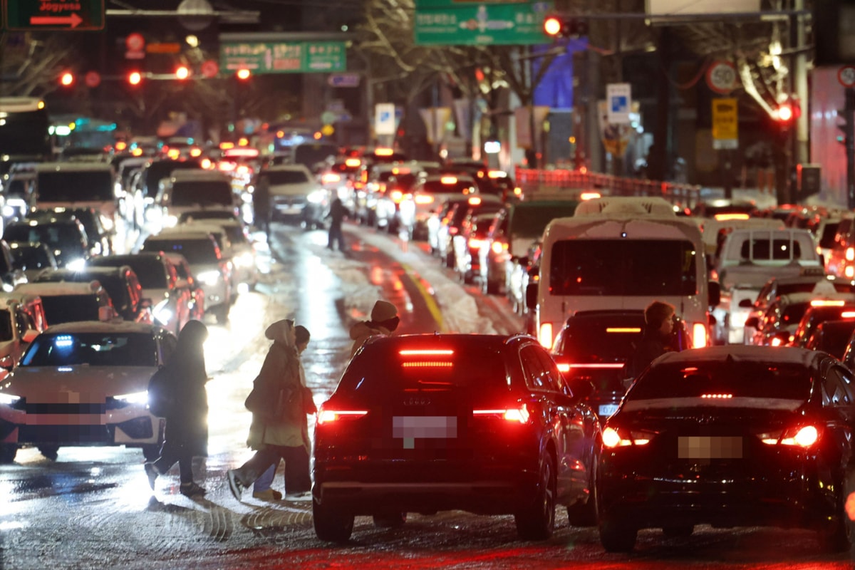 수도권과 중부지방에 5㎝ 안팎 눈이 내려 주요 도로가 통제되고 있다.