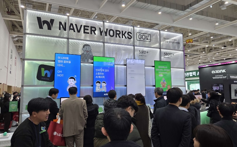 가장 관심을 모은 서비스는 행정안전부, 과학기술정보통신부, 식품의약품안전처 등 주요 중앙 부처에서 시범 운영 중인 '네이버웍스'였다. 네이버웍스는 회의록 자동 요약, 메일 요약·답장 초안 제안, 미열람 메시지 요약, 기관별 맞춤 AI 어시스턴트 생성 등 공공 행정에 특화된 기능을 제공하며, 실제 공무원들의 업무 생산성을 높이는 핵심 도구로 평가받았다.
