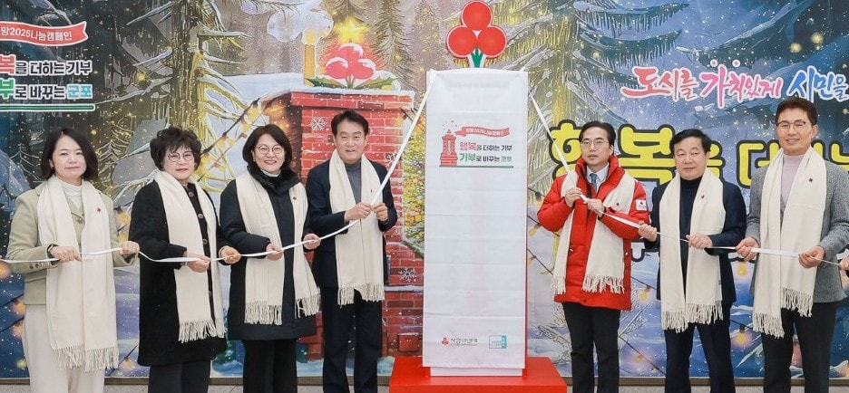 군포시는 지난 5일 시청 로비에서 '희망2026 나눔캠페인 사랑의 온도탑' 제막식을 개최했다고 8일 밝혔다. 본격적인 나눔 캠페인 시작을 알린 행사는 하은호 군포시장, 경기사랑의열매 김효진 사무처장, ESG 나눔기업 대표 등이 참석했다. 사랑의 온도탑 제막식과 ESG나눔기업 감사패 전달 등 주요 행사를 진행했다. ESG 나눔기업으로 선정된 NH농협은행 군포시지부 등 6개 기관이 감사패를 받았다.