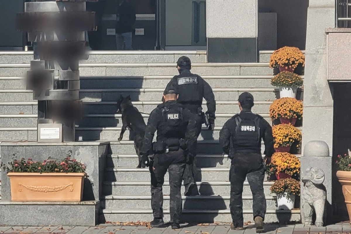 경기 포천시 한 초등학교 수영장 공사 현장에서 폭탄이 발견돼 소동이 벌어졌다. 사진은 지난달 10일 대구시 남구에 위치한 한 고등학교에 폭발물이 설치됐다는 신고가 접수돼 경찰 등 관계 당국이 조사에 나선 모습. 해당 기사와 연관없음. /사진=뉴시스