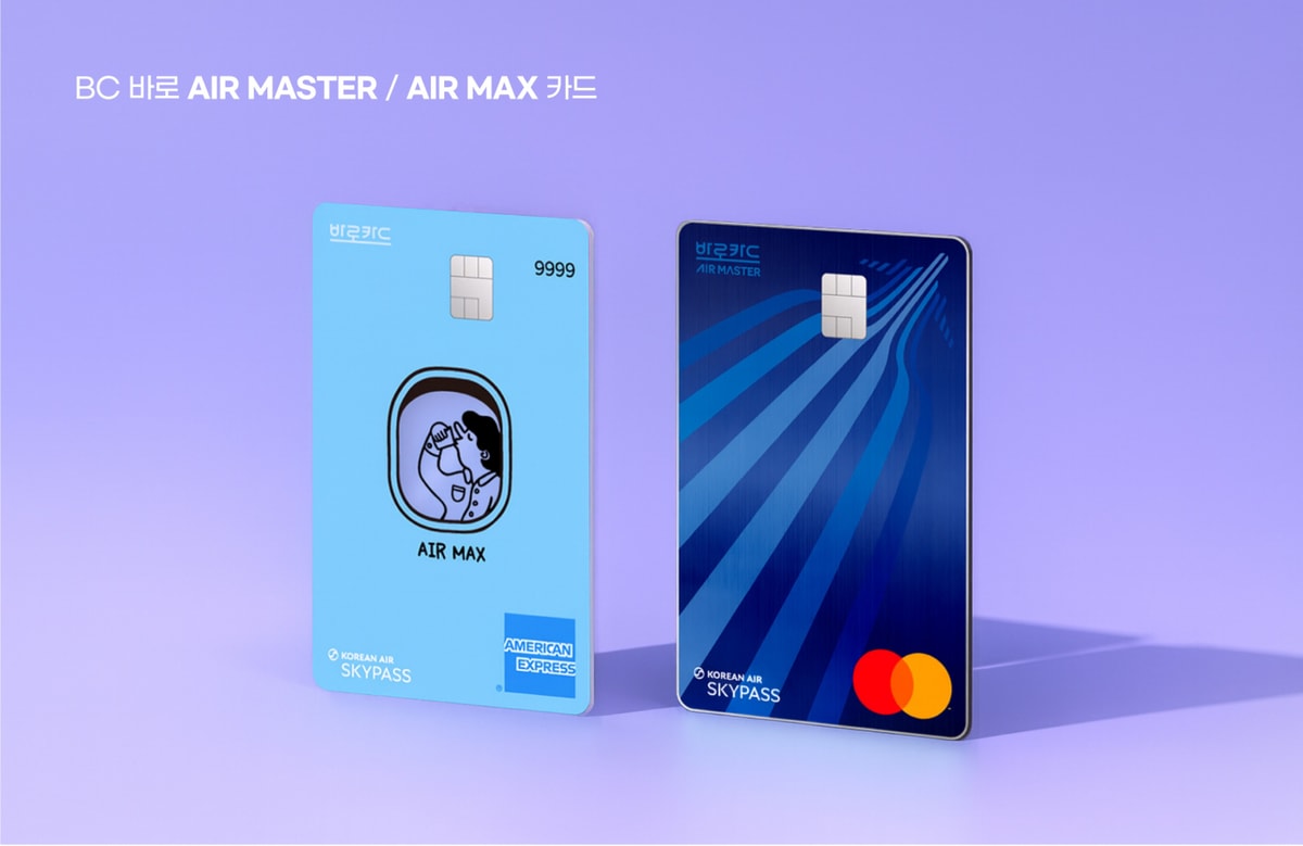 BC카드가 이번에 선보인 자체 발급카드 라인업은 '에어 마스터(AIR MASTER)'와 '에어 맥스(AIRMAX)' 2종으로 구성됐다. 두 상품 모두 대한항공 스카이패스 마일리지 적립을 기본으로 하며, 주유·교통·온라인 쇼핑·아파트관리비 등 생활 지출 영역까지 적립 범위를 넓힌 점이 특징이다.
