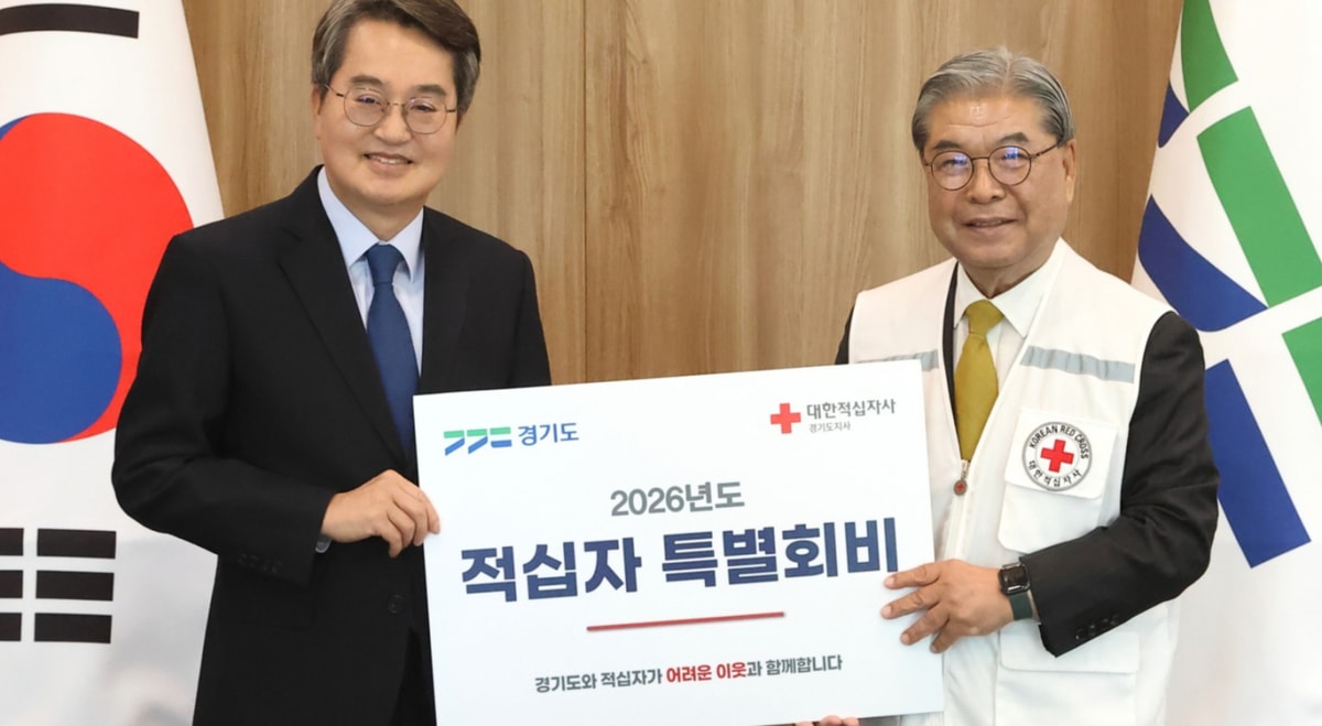 경기도는 9일 경기도청에서 '2026년 대한적십자사 특별회비 전달식'을 개최했다고 밝혔다. 도민의 모금 참여를 장려하기 위해 지난 1일부터 시작한 '2026년 적십자 회원모집 및 회비 집중모금기간'에 맞춰 진행했다.