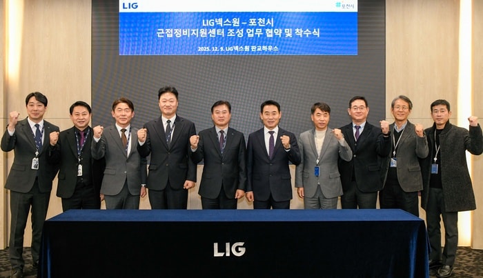 포천시와 엘아이지(LIG)넥스원은 9일 엘아이지(LIG) 판교하우스에서 '근접정비지원센터 조성'을 위한 업무협약(MOU)을 체결했다.