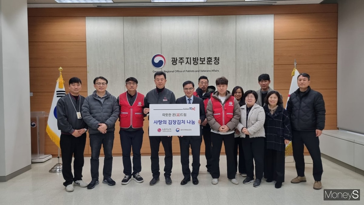 LG이노텍 노동조합 광주지부는 지난 9일 광주지방보훈청을 방문해 보훈가족을 위한 '따뜻한 온(溫)드림, 사랑의 김장김치 나눔' 행사를 가졌다고 10일 밝혔다. LG이노텍 노조 광주지부 봉사단은 겨울철을 맞아 고령 무의탁·독거 등 취약계층 국가유공자가 따뜻한 겨울을 보낼 수 있도록 900만원 상당(1250Kg)김장김치를 보훈가족 250가구에 전달할 예정이다. LG이노텍 노동조합 광주지부는 2006년부터 국가유공자와 유가족에게 '반찬지원', 주거환경 개선을 위한 '행복하우스' 등 지역 사랑 나눔 활동을 실천해 오고 있다.
