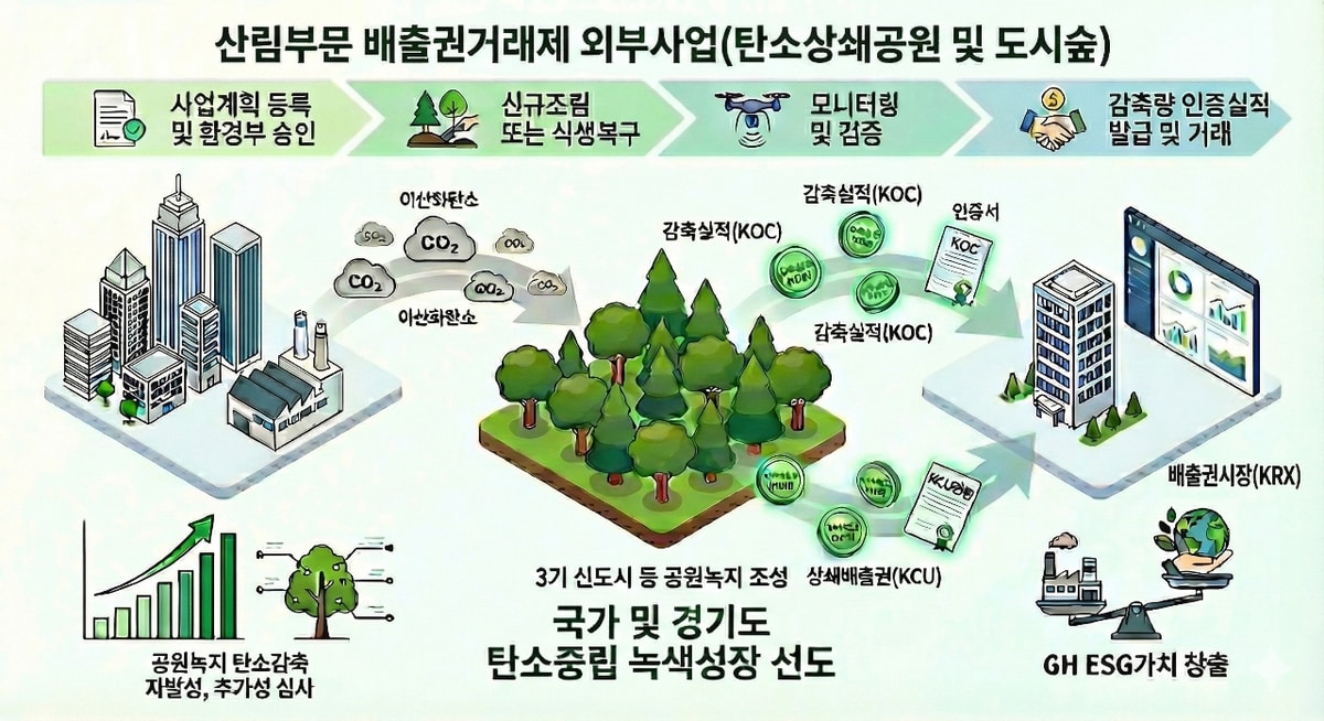 경기주택도시공사(GH)는 광명시흥 도시첨단산업단지 내 공원녹지를 활용한 '산림부문 배출권거래제 외부사업'의 정부 공식 승인, 등록을 완료했다고 10일 밝혔다.