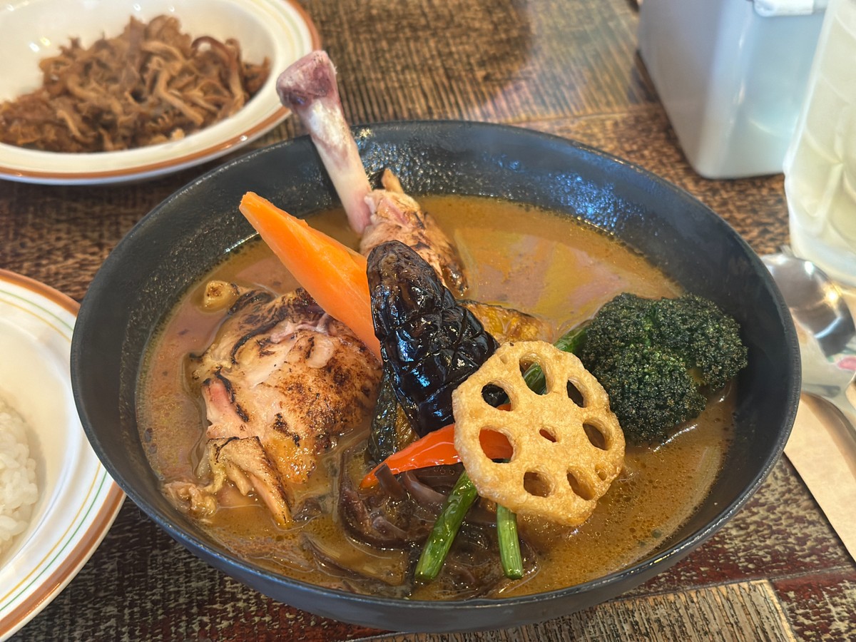 다양한 채소를 굽거나 튀겨 올리는 스프카레에는 식재료 본연의 맛을 보존하되 낭비를 최소화하고 지속가능한 방식을 추구하는 홋카이도 지역의 음식 철학이 깃들어있다. 맑지만 깊이가 있는 육수, 통째로 구워 올린 채소, 큰 조각의 고기, 그리고 단계별로 조절 가능한 매운맛은 현재 가장 보편적인 스프카레의 형태로 자리잡았다.