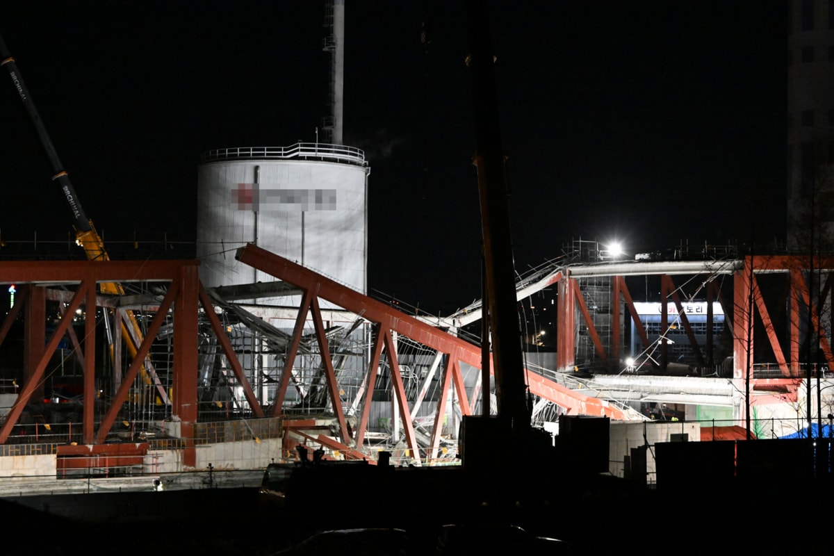 당국은 사고 지점에 흩뿌려진 타설 콘크리트를 호미로 긁어내고 절단기로 철근을 잘라가며 수색 작업을 이어가고 있다. 열화상카메라와 대형크레인도 동원해 나머지 2명의 매몰자를 찾고 있다.