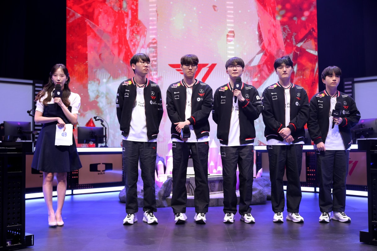 T1은 5세트 초반 한타를 연달아 패했다. 당시 심경을 묻자 류민석은 "초반 교전에서 생각보다 손해를 많이 봐서 게임이 불리해졌던 것 같다"라며 "(팀원들과) 아타칸때 교전을 계속 설계했다. 최대한 어떻게 풀어나갈지 고민하고 압박을 줘서 역전에 성공한 것 같다"고 웃었다.