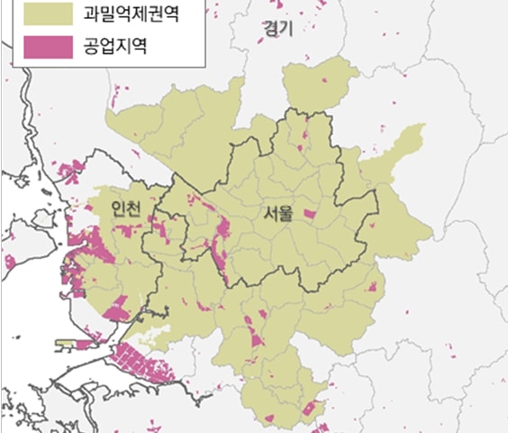 1982년 제정된 '수도권정비계획법'은 수도권 과밀억제권역(경기도 14개 시, 서울시 전역, 인천시 일부)에서 신규 공업지역 지정을 원칙적으로 금지하고 있다. 경기도를 비롯해 서울시, 인천시가 각각 보유한 기존 물량 내에서 해제와 대체 지정을 통한 재배치만 가능하다.