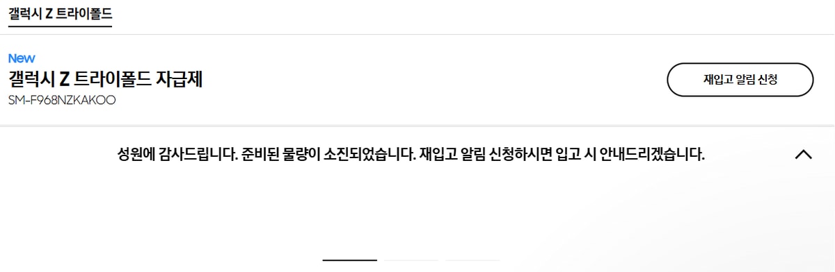 삼성전자 갤럭시 Z 트라이폴드'가 2차 판매에 2분 만에 완판됐다. /사진=삼성닷컴 갈무리