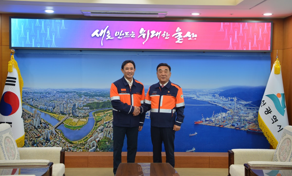 최윤범 고려아연 회장은 17일 김두겸 울산시장을 만나 국내 채용 규모 2배 확대 계획, 미국제련소 건설 계획과 파급효과 등을 설명했다.