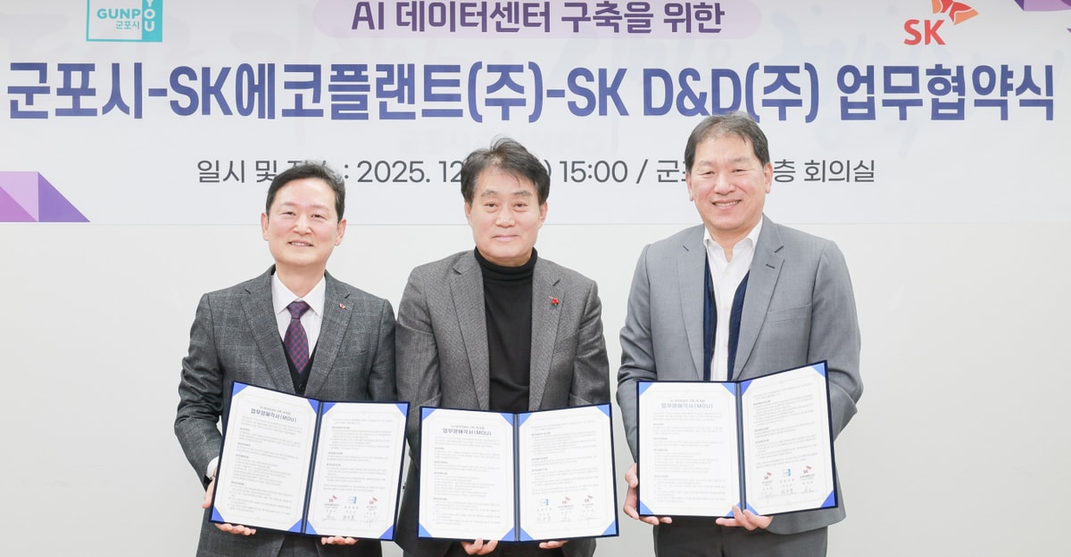 군포시는 지난 17일 시청에서 SK에코플랜, SK디앤디와 군포역세권 복합개발지구 AI 데이터센터 구축 업무협약을 체결했다고 18일 밝혔다.