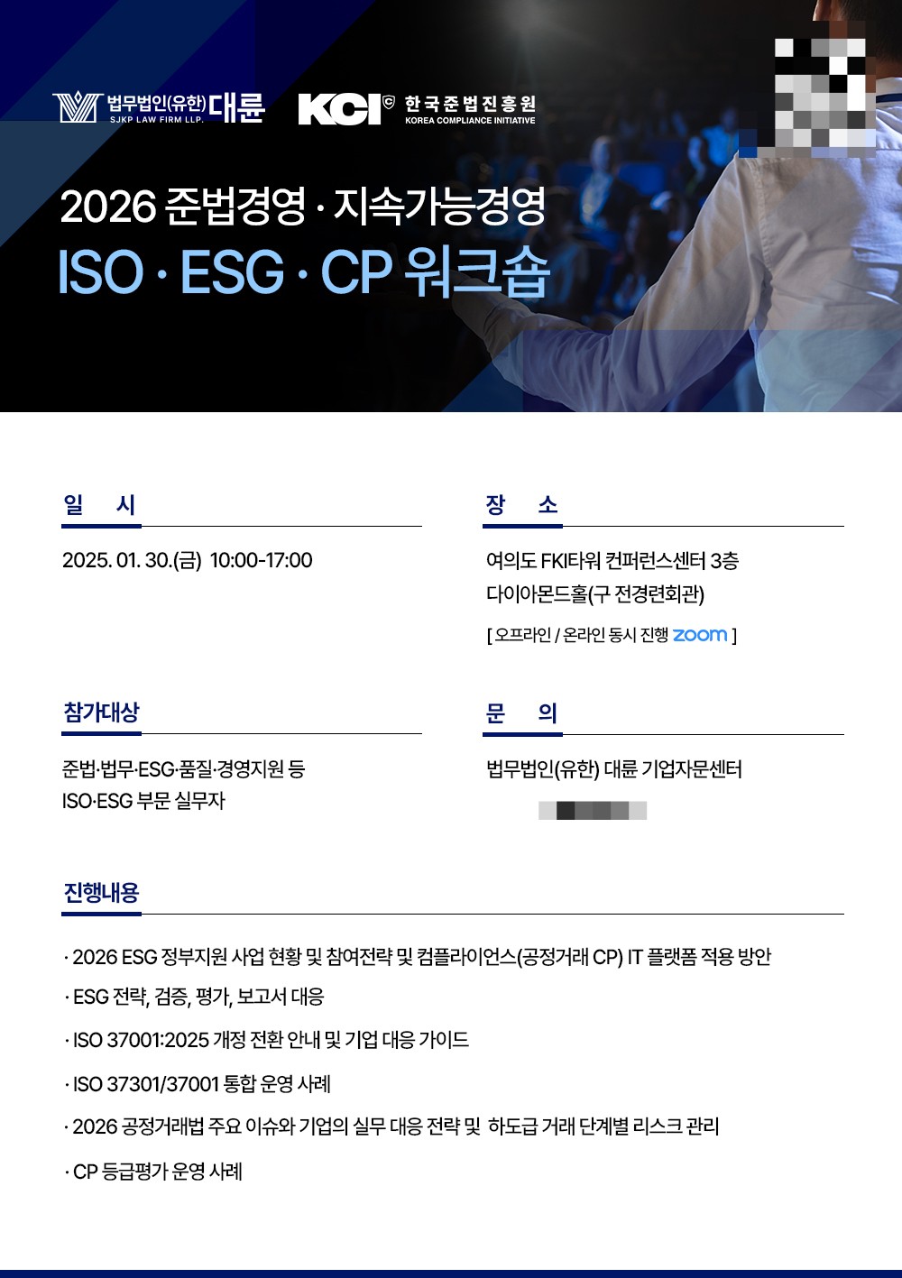 오는 2026년 1월30일 서울 여의도 FKI타워 컨퍼런스센터 3층 다이아몬드홀에서 열리는 이번 워크숍은 급변하는 대내외 경영 환경에 대응해 기업의 준법 및 ESG 핵심 전략을 선제적으로 점검하기 위해 마련됐다.