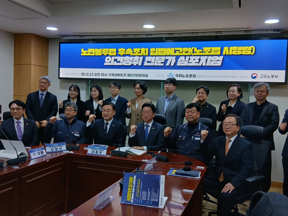 이날 심포지엄을 주최한 국회노동포럼 연구책임위원인 이용우 의원(더불어민주당·인천 서구을)과 신장식 의원(조국혁신당·비례대표)은 전문가 의견을 반영해 미비점을 보완하겠다고 밝혔다. 이 의원은 "법리와 법 체계 전반을 종합적으로 검토하기 위해 의견을 듣는 자리"라며 "문제점 개선과 대안 모색이 목적"이라고 말했다. 신 의원도 "악마는 디테일에 있다"며 논의를 지켜보겠다고 했다.