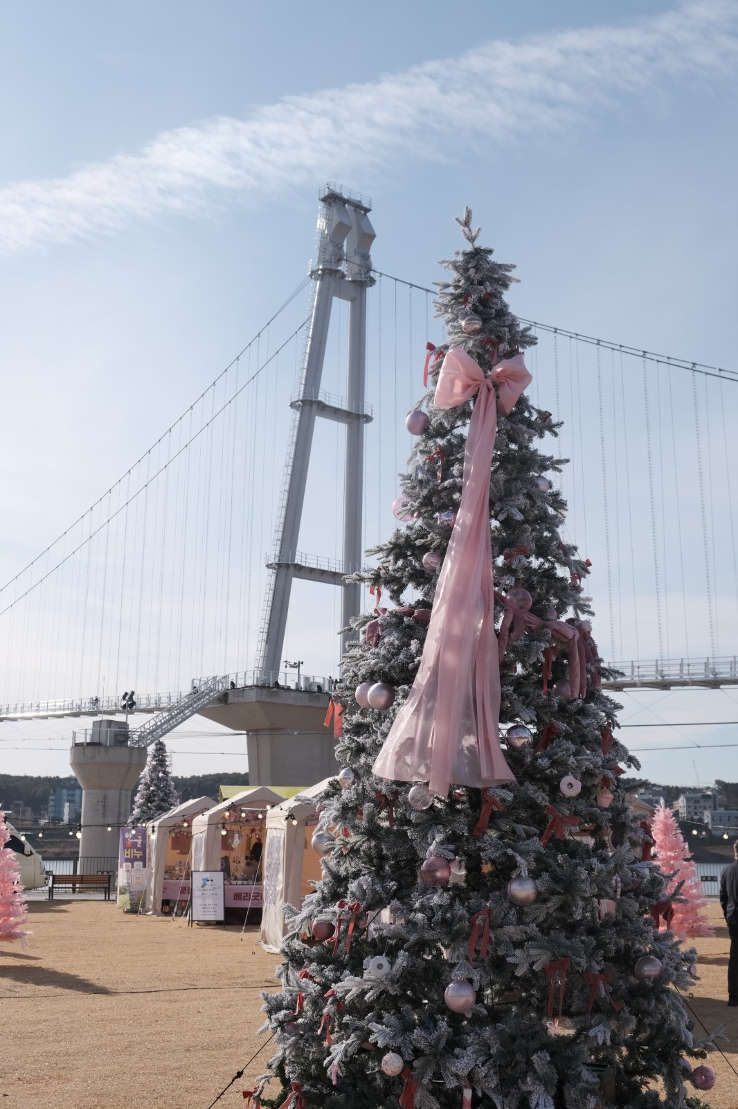 여주 남한강 출렁다리 광장에서 운영 중인 크리스마스 마켓 '핑크 홀리데이 여주'모습. /사진제공=여주시