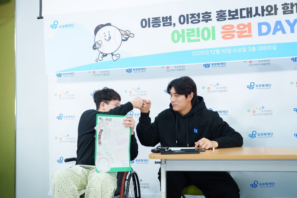 이원일 푸르메재단 넥슨어린이재활병원장은 "장애어린이를 위해 매년 나눔을 실천하는 이정후 덕분에 더욱 따뜻한 연말이 됐다"며 "메이저리그에서 활약하면서도 어린이들을 잊지 않는 이정후의 마음을 생각하며 장애어린이들의 재활치료에 최선을 다하겠다"고 약속했다.