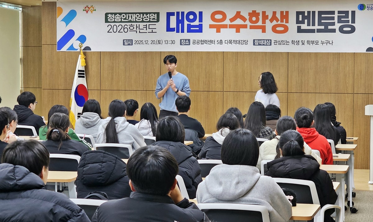 앞서 청송인재양성원은 지난 21일 2026학년도 수강생 선발시험을 실시했으며, 오는 30일 합격자 발표를 거쳐 내년 1월 초 개강할 예정이다. 또한 내년 1월 중에는 관내 학생과 학부모를 대상으로 한 입시설명회도 개최할 계획이다.