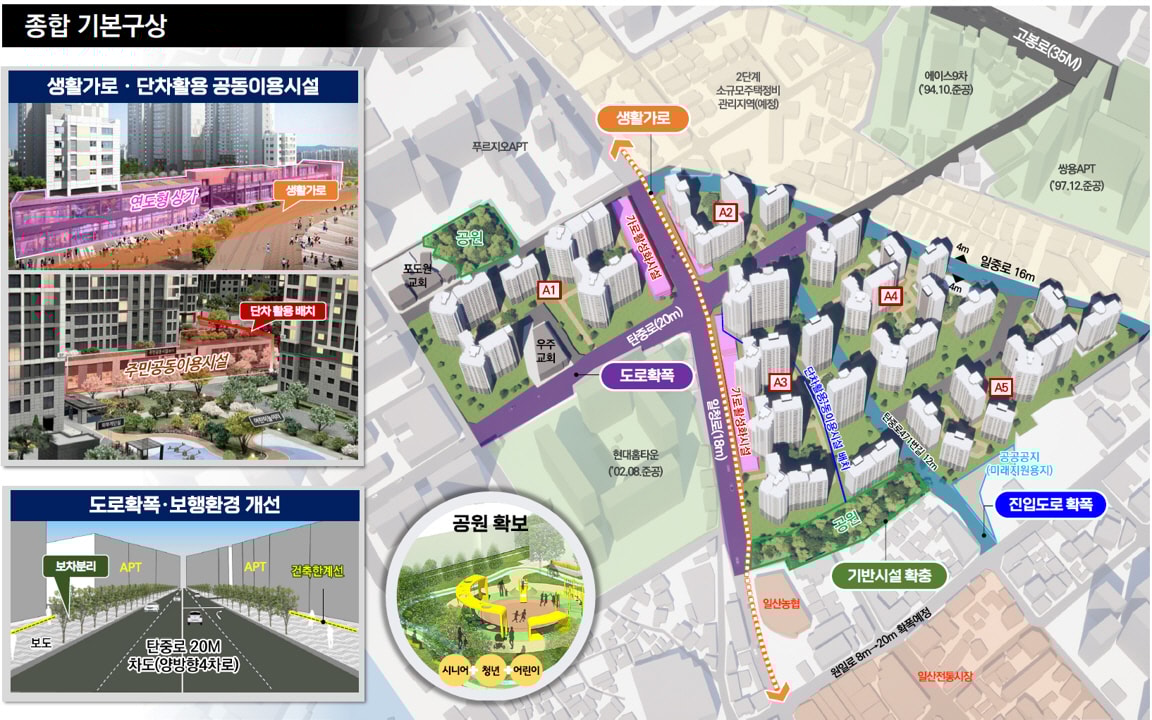 주요 내용으로 △제1종 일반주거지역의 제2종 상향을 통한 사업성 제고 △탄중로 등 주요 도로 확폭(최대 20m) △어린이공원 2개소(5,642㎡) 신설 등이 포함됐으며 이를 통해 일산 원도심 지역의 기반시설이 개선될 전망이다.