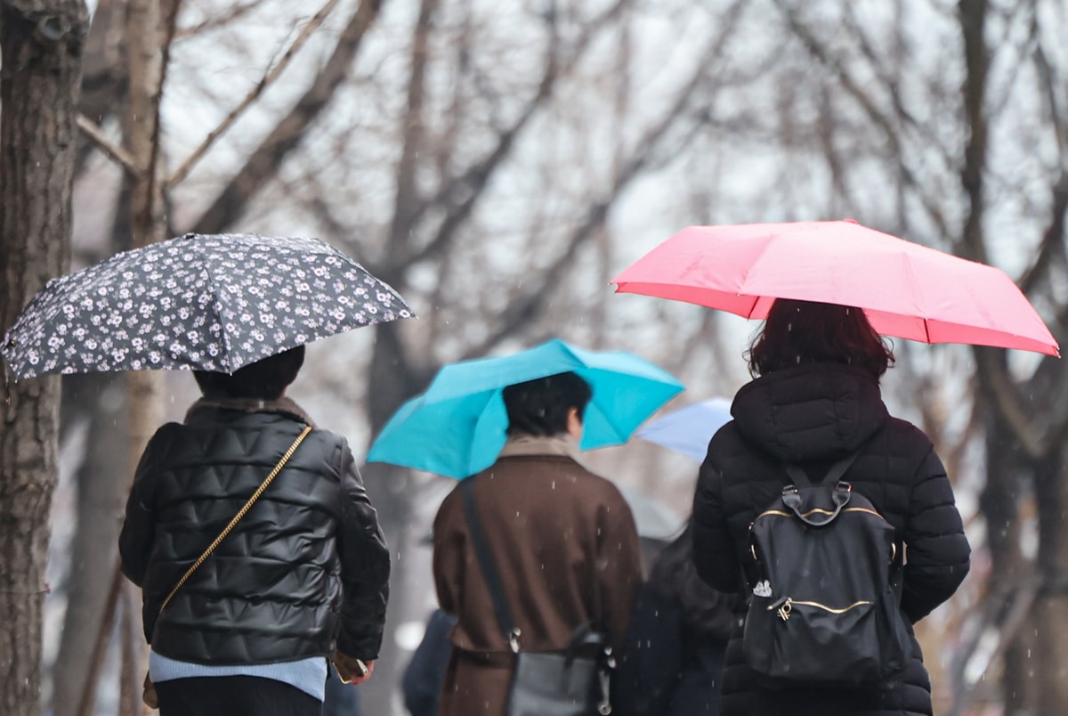 예상 강수량은 ▲서울·인천·경기·서해5도 5~20㎜ ▲강원내륙·산지 5~10㎜ ▲강원동해안 5㎜ 미만 ▲대전·세종·충남 5~20㎜ ▲충북 5~10㎜ ▲광주·전남·전북 5~20㎜ ▲부산·울산·경남·대구·경북 5~20㎜ ▲제주 5~20㎜ 안팎이다. 예상 적설량은 ▲경기북부내륙 1~3㎝ ▲강원북부산지 1㎝ 안팎이다.