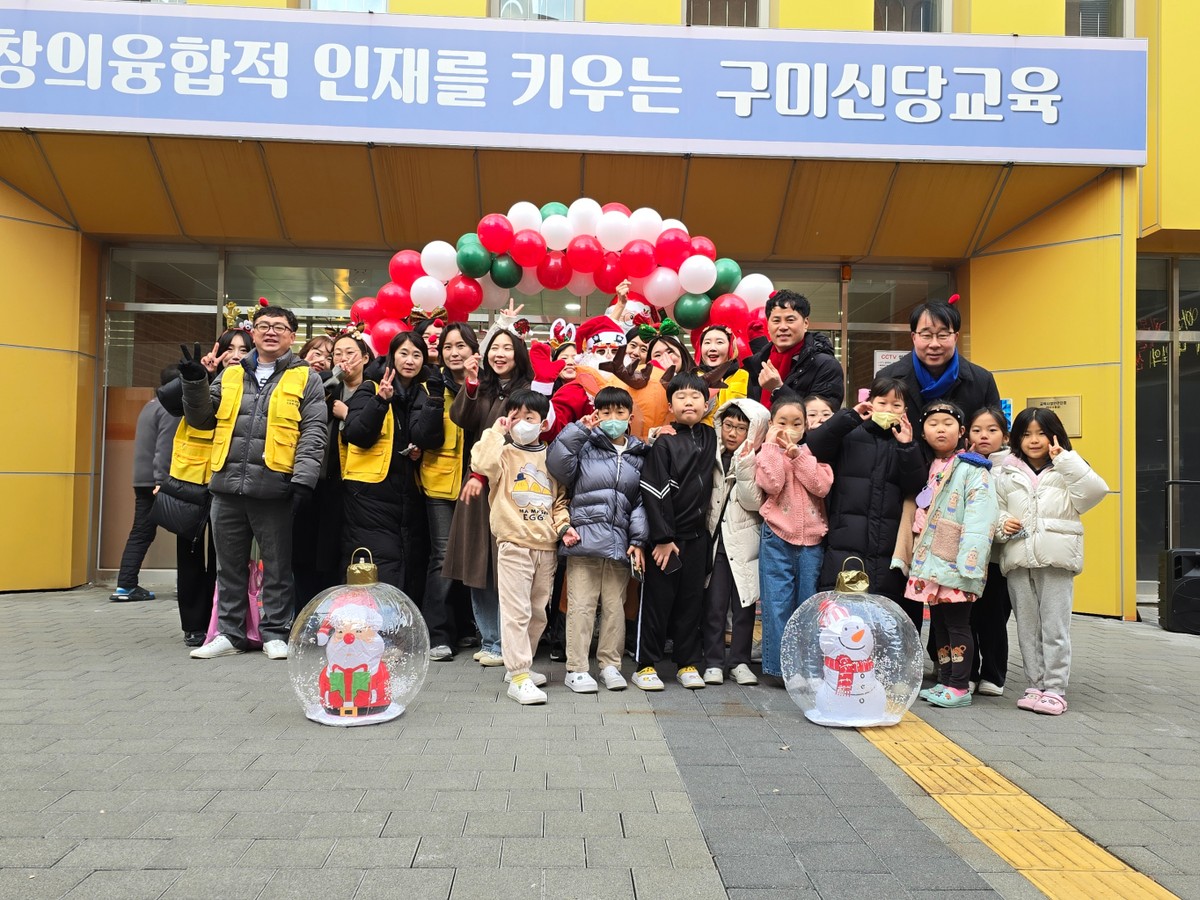 윤종호 경북도의원(사진 뒷줄 오른쪽에서 두 번째)이 23일 등교맞이 행사를 마친 뒤 신용하 시의원(뒷줄 오른쪽), 한익희 교장(가운데 산타 복장), 학부모회 임원 및 학생들과 함께 기념촬영을 하고 있다. /사진=머니S 박영우 기자