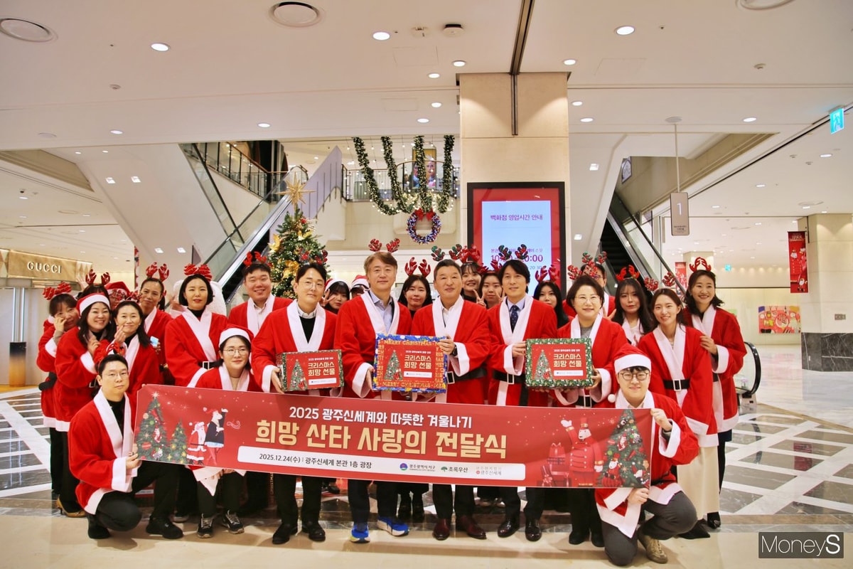 광주신세계는 24일 본관 1층 광장에서 지역 소외계층의 따뜻한 겨울나기 후원 행사인 '2025 희망 산타 사랑의 전달식'을 개최했다고 밝혔다. 광주신세계는 이날 초록우산 어린이재단에 1000만원을 후원했다. 후원금은 올 겨울 서구 관내 주거 취약계층 50가구의 난방비와 저소득층 20가구의 선물 구입에 쓰여질 예정이다.