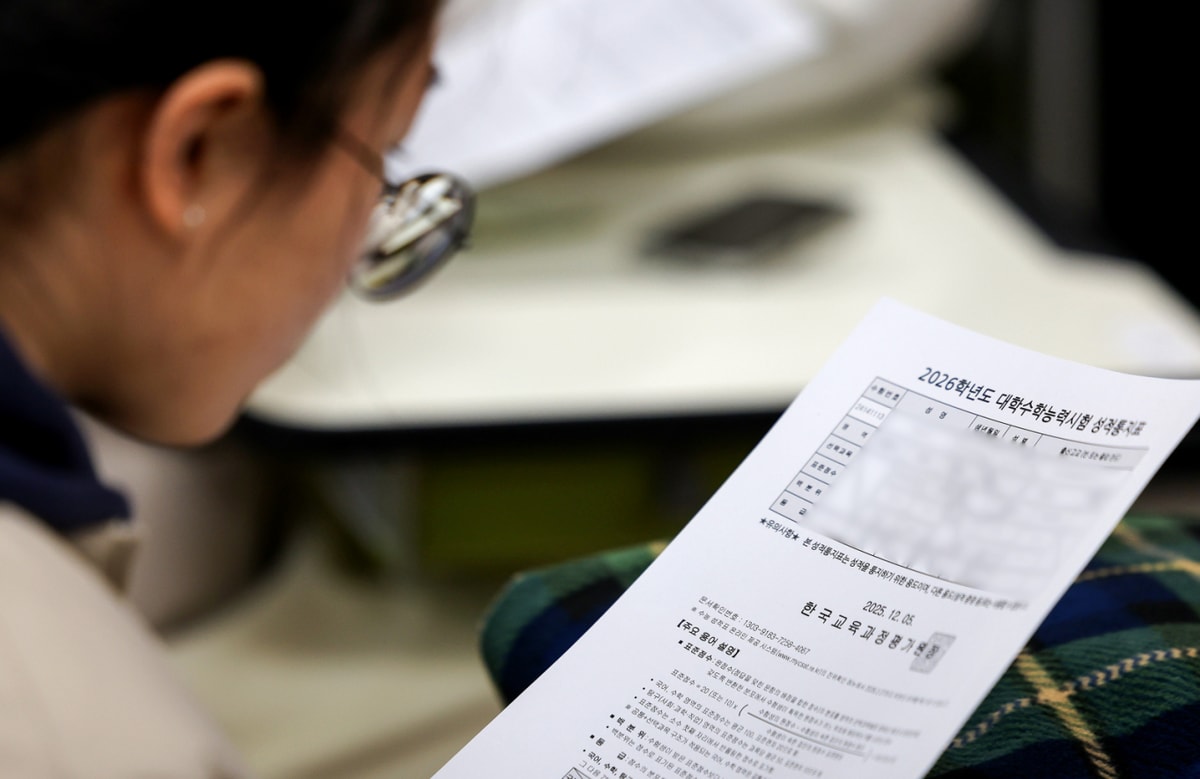 이화여대와 사관학교 등에서 대학별고사에 고교 수준 범위를 넘어난 문제가 출제된 것으로 나타났다. 사진은 5일 2026학년도 수능 성적표가 배부된 가운데 성적표를 살표보는 수험생. /사진=뉴시스