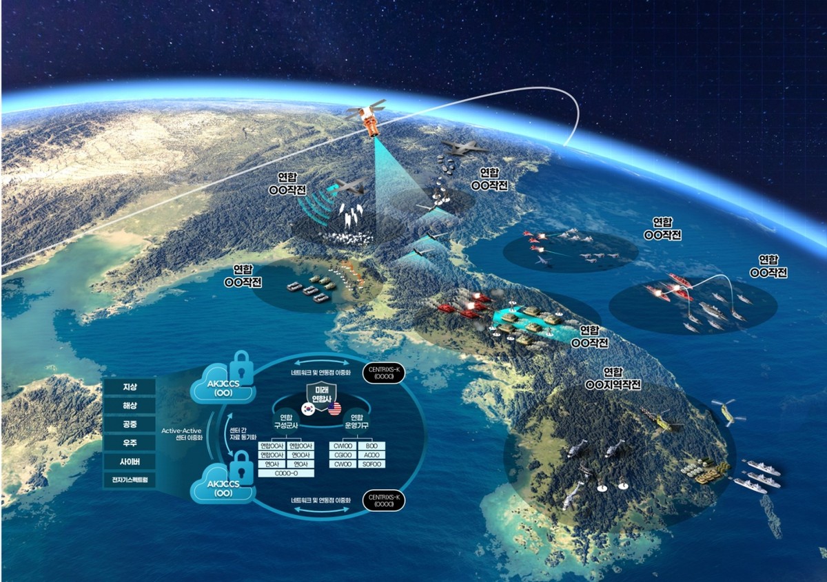 한화시스템이 한미 연합작전을 총괄하는 핵심 지휘통제체계(군 지휘관이 임무에 따라 부대의 운용을 지시하고 통제하는 데 필요한 시설 및 장비)의 재구축 사업을 도맡는다. 연합지휘통제체계(AKJCCS) 운용 개념도 /사진=한화시스템