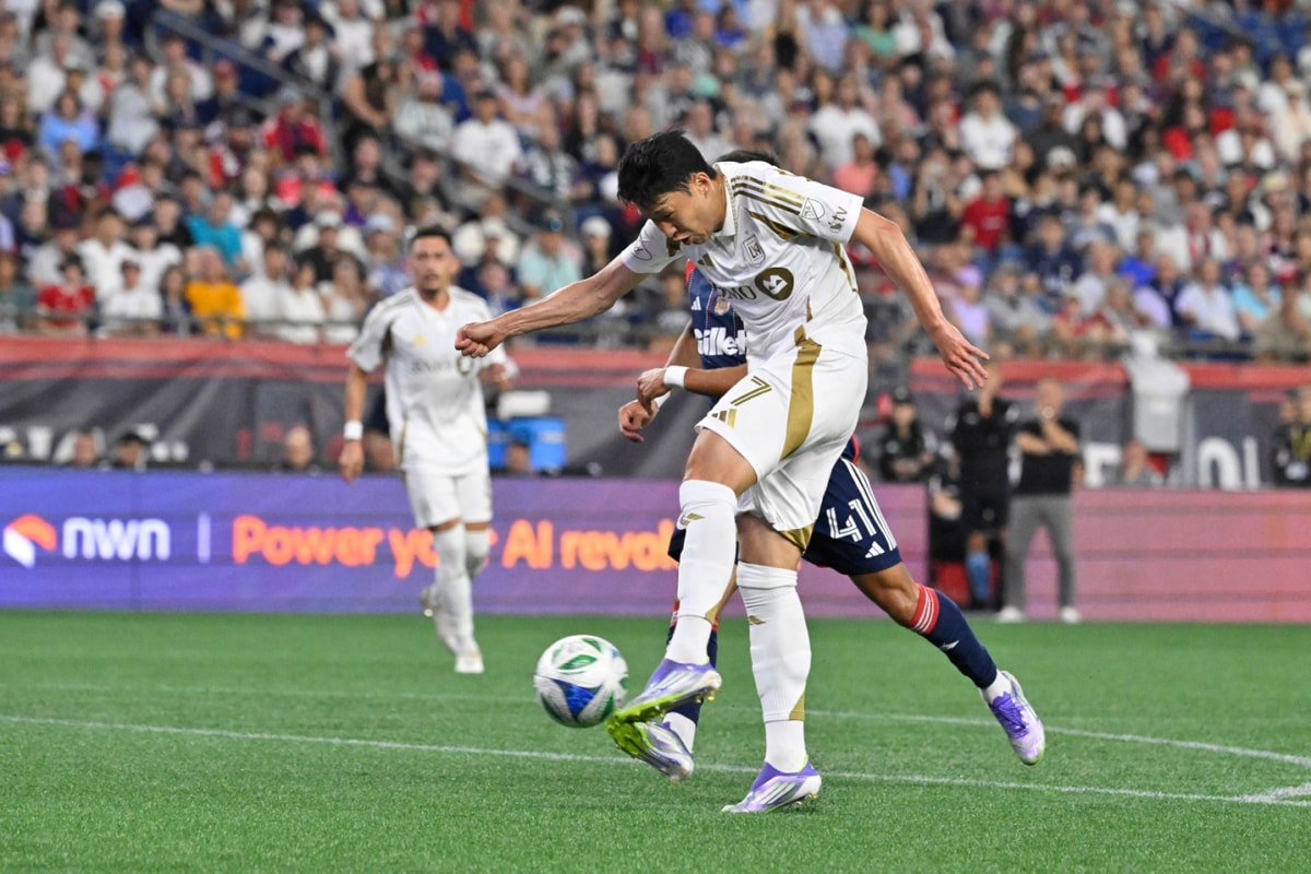 미국메이저리그사커(MLS) LA FC의 공격수 손흥민이 지난 8월 17일(한국시간) 미국 매사추세츠 폭스버러의 질레트 스타디움에서 열린 2025 MLS 28라운드 뉴잉글랜드 원정 경기 전반 슛을 시도하고 있다. 이날 4-3-3 포메이션의 최전방 공격수로 선발 출전했다. /로이터=뉴스1