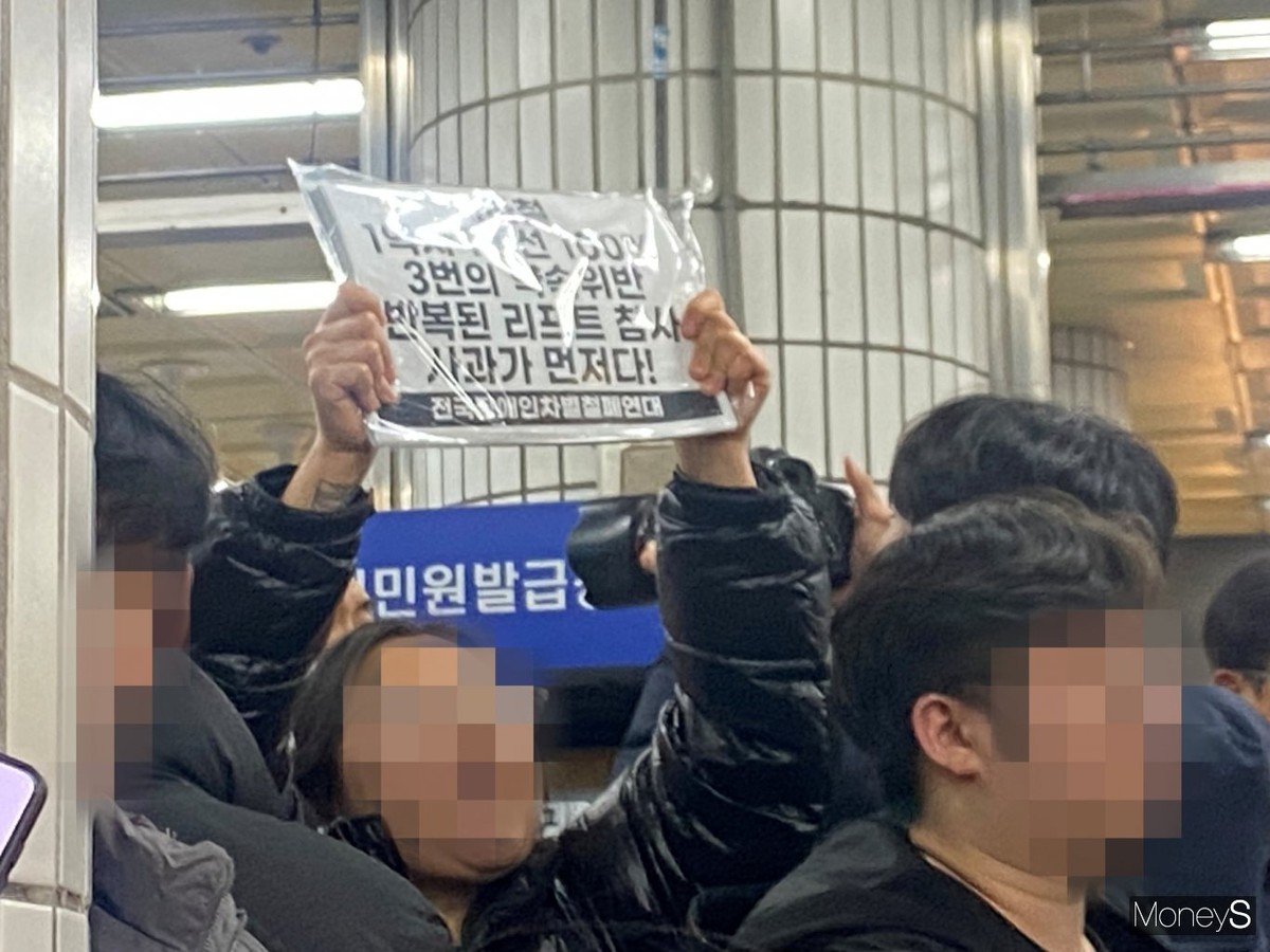 이날 현장에선 장애인의 이동권 보장과 서울시에 사과를 요구하는 전국장애인차별철폐연대(전장연) 관계자들의 시위도 있었다. 이들은 엘리베이터 미설치 역사가 여전히 존재한다고 주장했다.