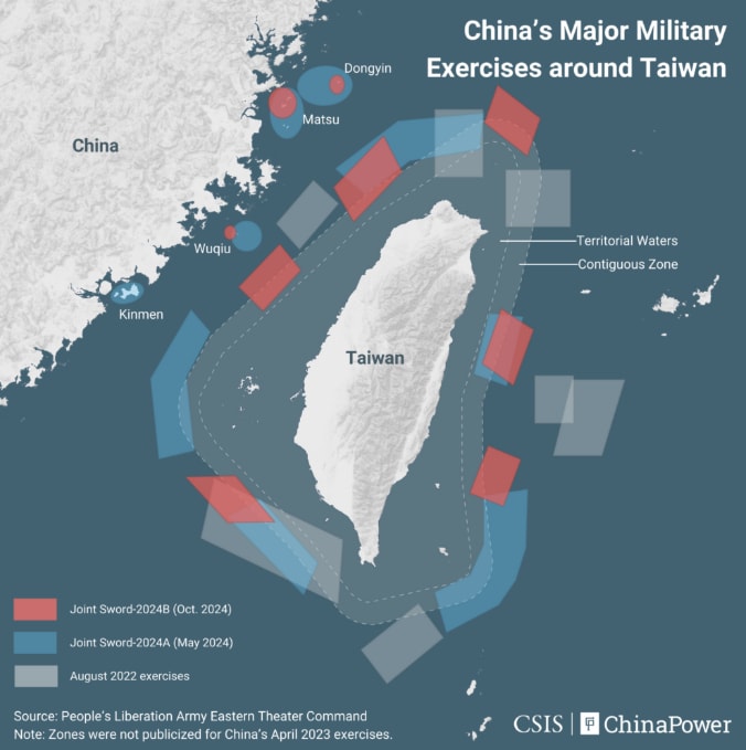 일본이 중국군 타이완 포위 군사훈련에 대한 대응에 나섰다. 사진은 지난해 10월에 중국 해군이 실시한 타이완 포위 군사훈련 관련 모습. /이미지=중국 해경 SNS 갈무리
