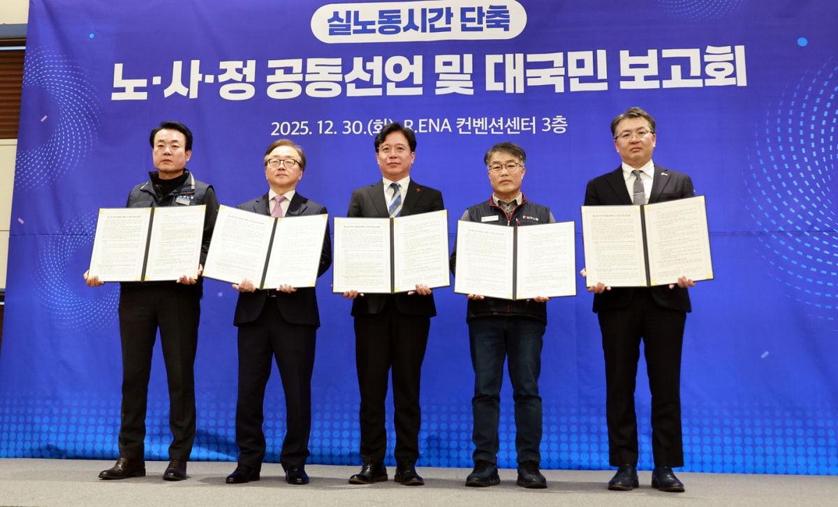 노사정이 2030년까지 한국의 연간 실노동시간을 OECD 평균인 1700시간대로 단축하기로 합의했다. 노사정이 실노동시간 단축을 국가적 최우선 과제로 공식화하고 공동 선언에 나선 것은 이번이 처음으로 '장시간 근로 국가'라는 오명을 벗기 위한 역사적 이정표가 마련됐다는 평가다. 정부는 포괄임금제 개선과 업무지시 관행 타파 등을 골자로 한 로드맵을 내년부터 단계적으로 추진한다.